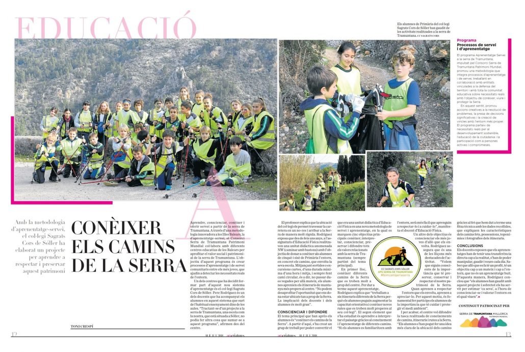 Publicació del diari Ara Balears del passat 10 de novembre. Resum del projecte dut a terme pel centre CC Sagrats Cors de Sóller durant els dos darrers cursos.