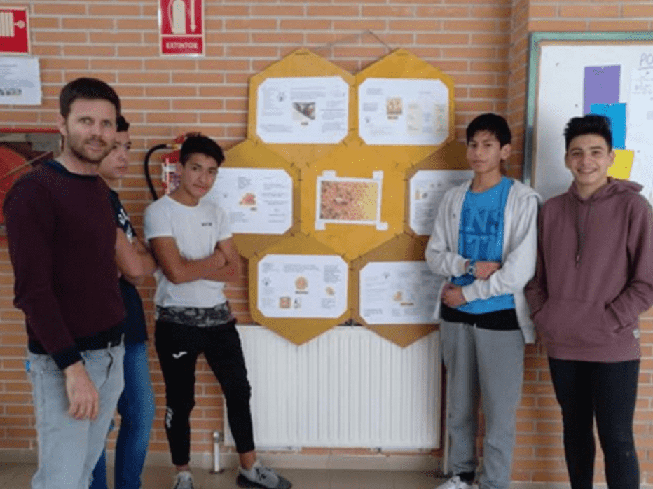 En aquesta activitat alguns alumnes varen construir uns hexàgons amb fusta, representant la forma que tenen les cel•les de les bresques. En cadascun d’aquests hexàgons hi ha un full explicatiu d’alguns dels diferents productes que s’obtenen a partir de les abelles, com són el pol•len, la gelea, la mel, la cera,… acompanyats d’imatges i textos explicatius.
