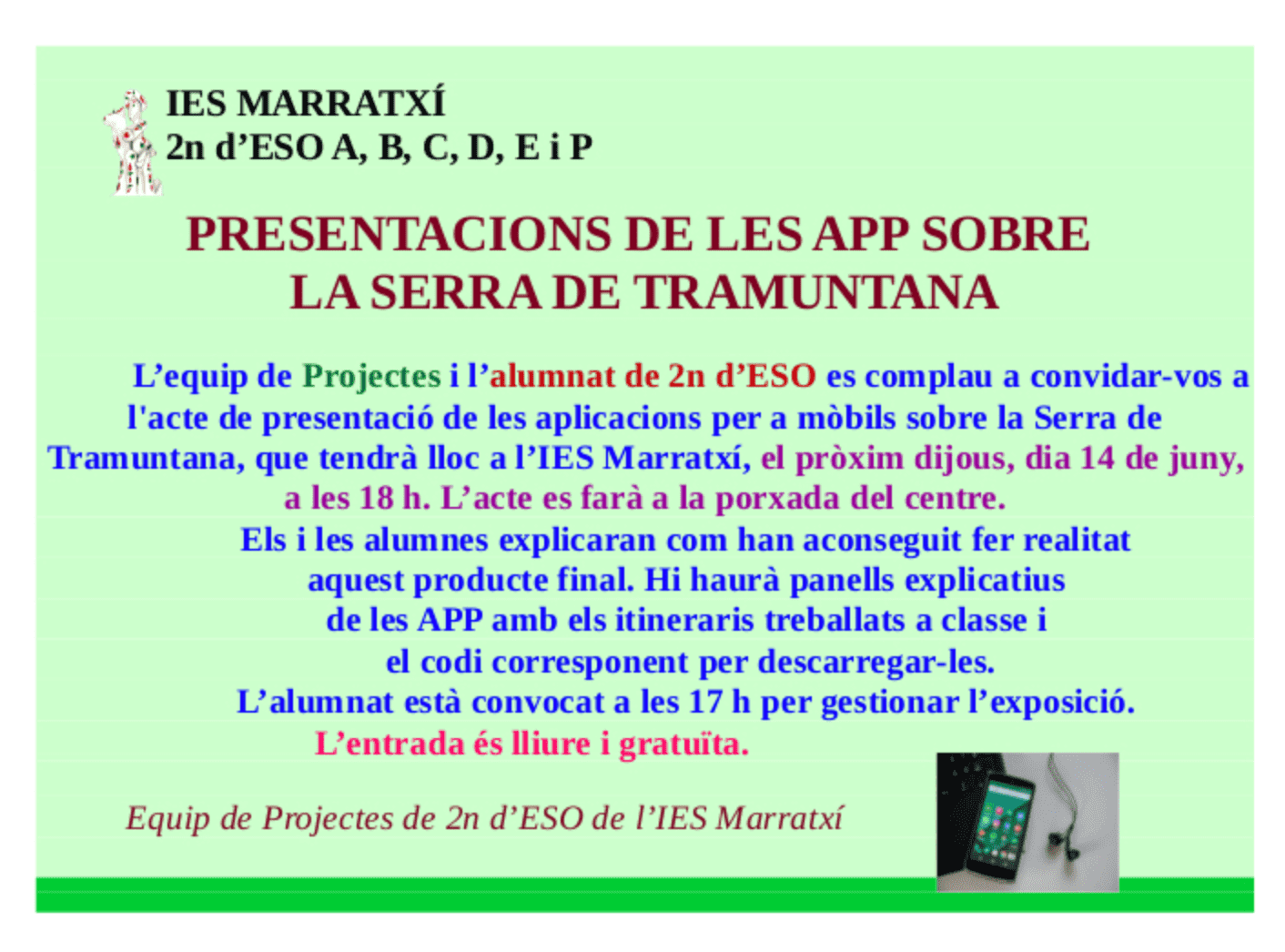 Els alumnes de 3r d’ESO de l’IES Josep Font i Trias d’Esporles ja han començat a posar en pràctica tot el que varen aprendre durant el primer trimestre del curs dins del projecte d’APS tramuntana “Gaudim descobrint la Serra”. El projecte, interdepartamental, va incloure coneixements dels departaments de Biologia i Geologia, Educació Física, Geografia i Història i Dibuix. Una hora setmanal fins a Nadal, els alumnes varen aprendre els noms de les plantes més comunes que es poden trobar a la serra, tècniques per saber com s’ha de fotografiar correctament, com es poden enregistrar rutes i punts d’interès amb el Wikiloc i com poder compartir informació i treballar amb les eines informàtiques de G Suites entre els grups que es varen formar.